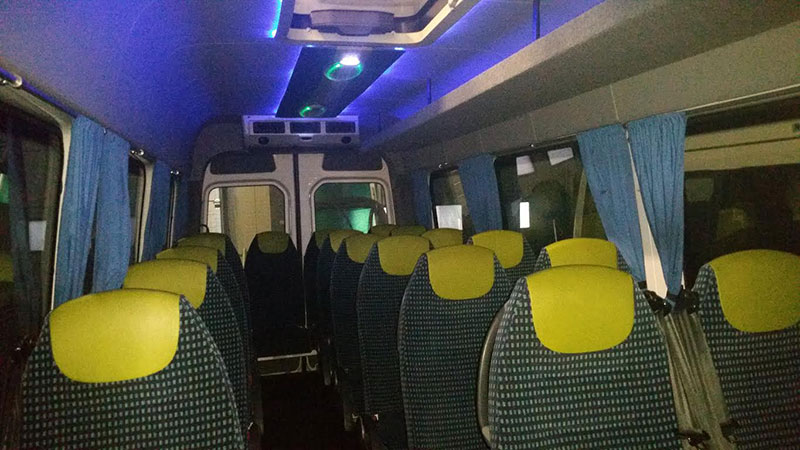 Deze bescheiden touringcar is met 19 zitplaatsen aan boord (alle voorzien van gordels) uitermate geschikt voor kleinere gezelschappen. Door het getinte glas en de airconditioning krijgt deze bus al gauw een luxe uitstraling. De mini-bus is verder voorzien van een cd- en dvd-speler met beeldscherm en een microfoon. Tot slot is het mogelijk om uw eigen muziek af te spelen, door de aanwezige iPod-aansluiting.